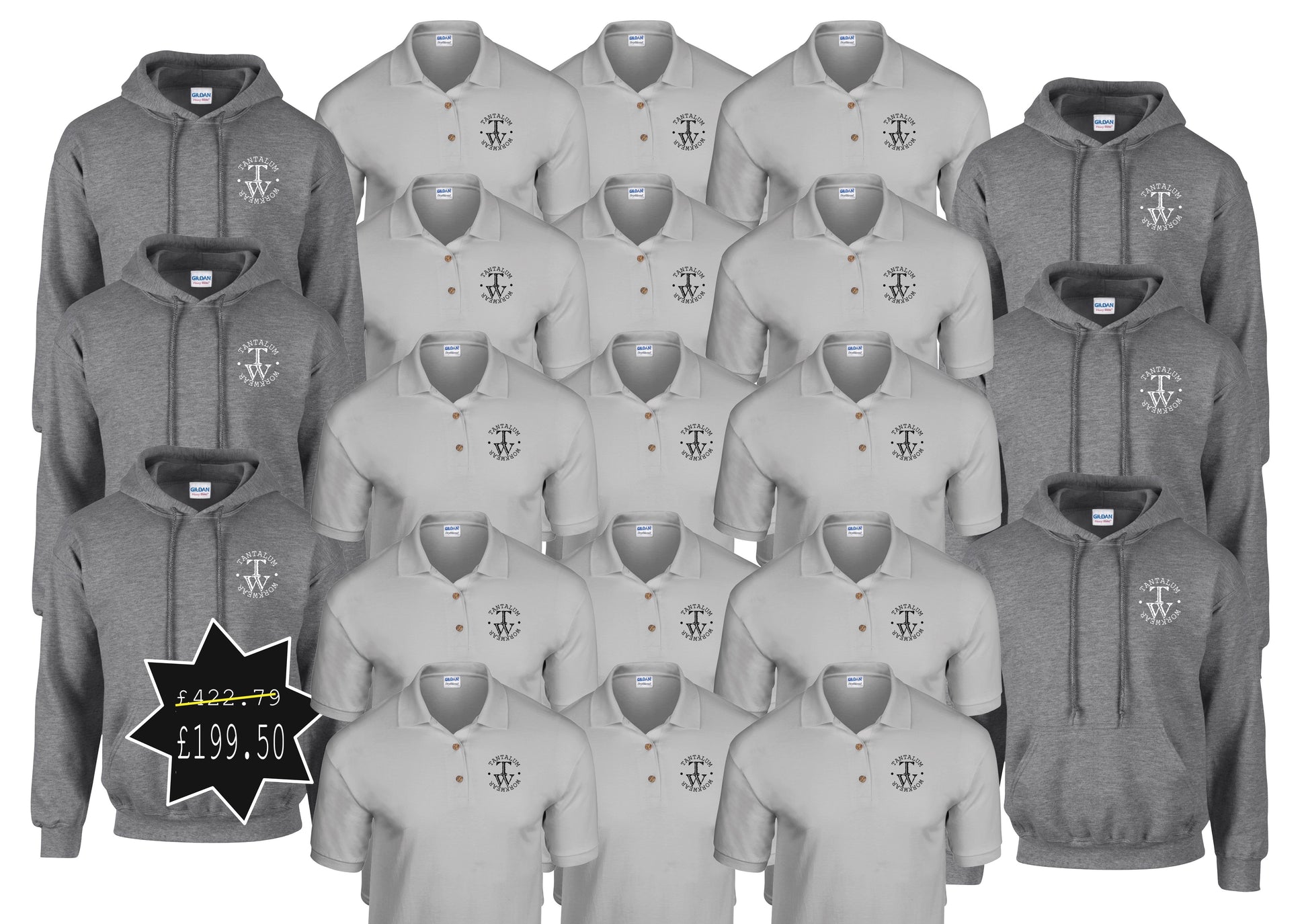 Bundle 11: 15 x Polo shirts (GD040) & 6 x hoodys (GD057) with printed logo